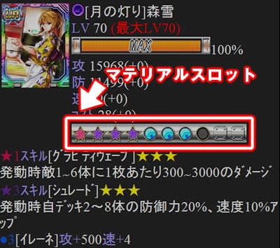 各カードには『マテリアルスロット』がありスロットの範囲でマテリアル強化を行うことができます。